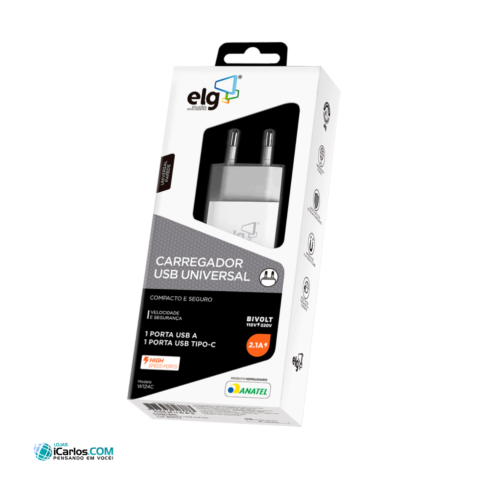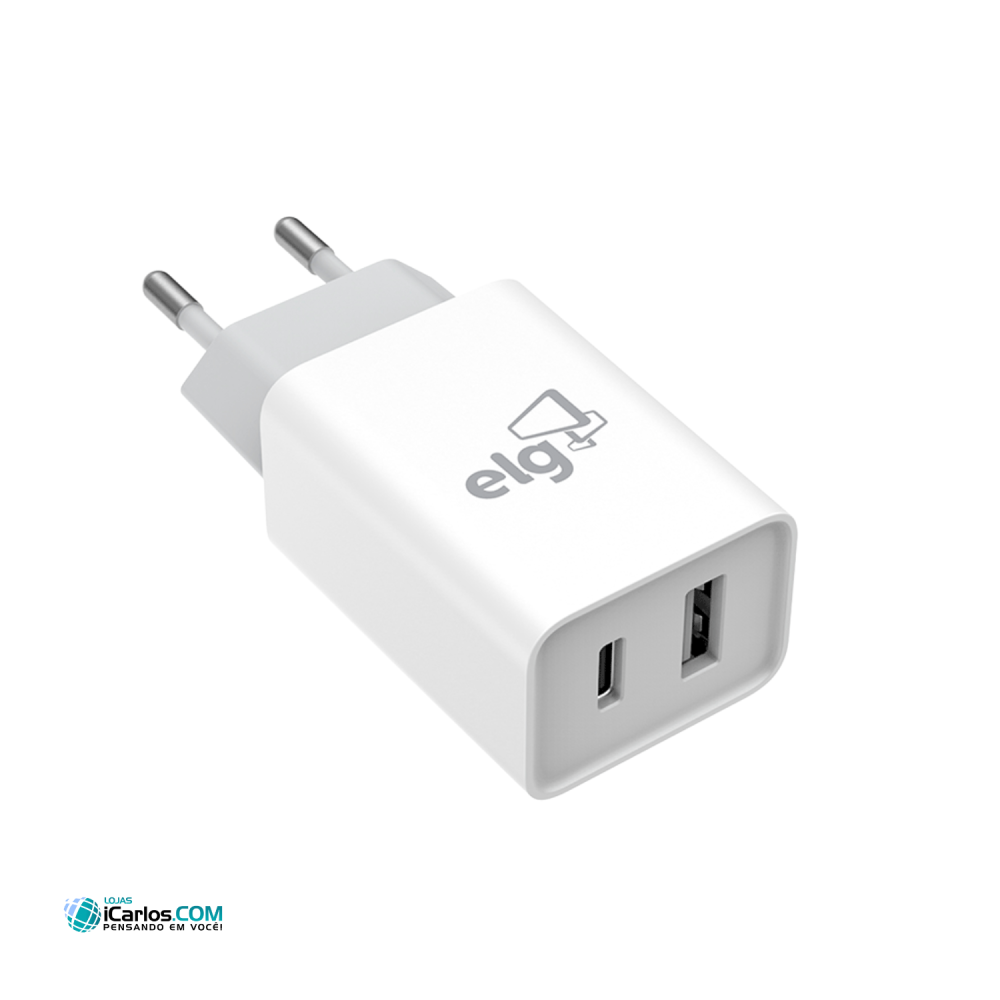 O Carregador de parede ELG possui tamanho compacto e moderno, trazendo mais comodidade ao seu dia-a-dia. Com uma porta USB tipo A e uma porta USB Tipo-C possui máxima compatibilidade com dispositivos recarregáveis através de portas USB. Permite a carregamento de dois dispositivos simultaneamente. Carga rápida (BOOST EXTRA). Conectores de alta eficiência. Desenvolvido em polímero antichamas.