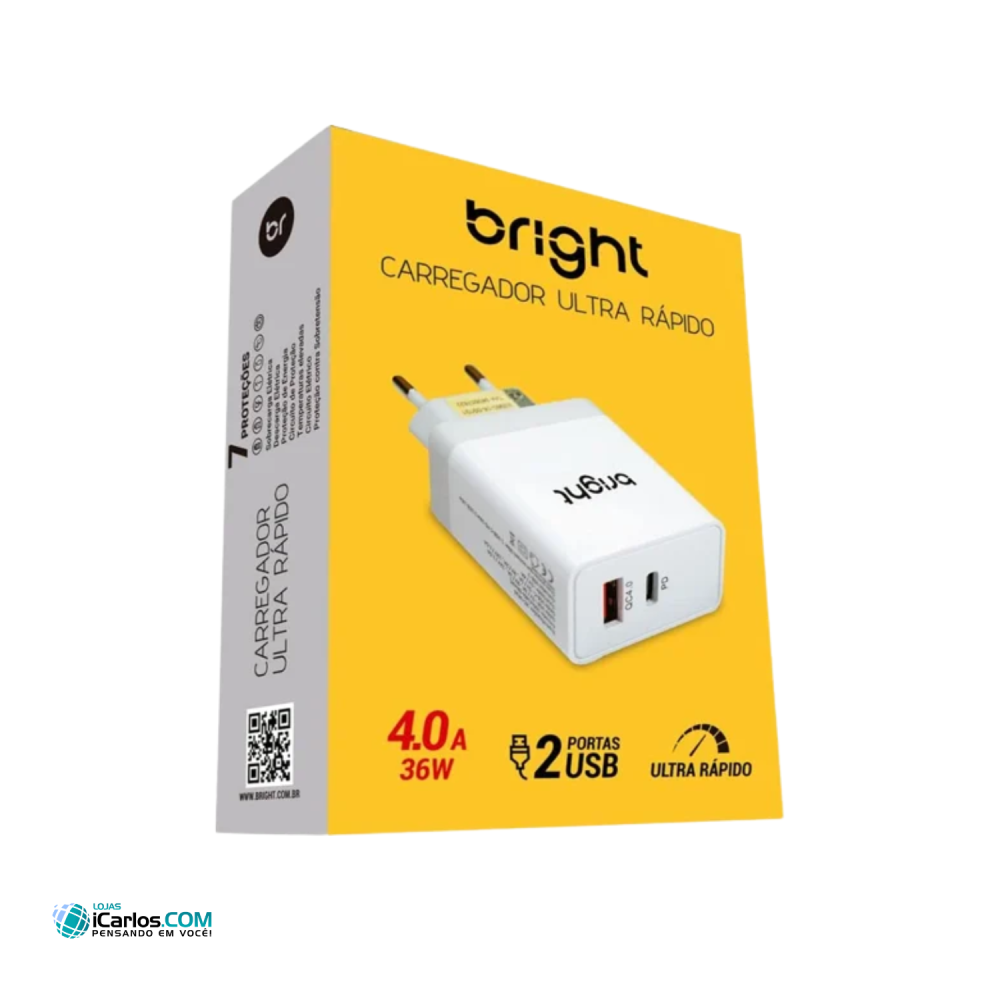 Use seu dispositivo a qualquer hora, em qualquer lugar, garantindo um carregamento eficiente e seguro com o carregador da Bright AC590.
