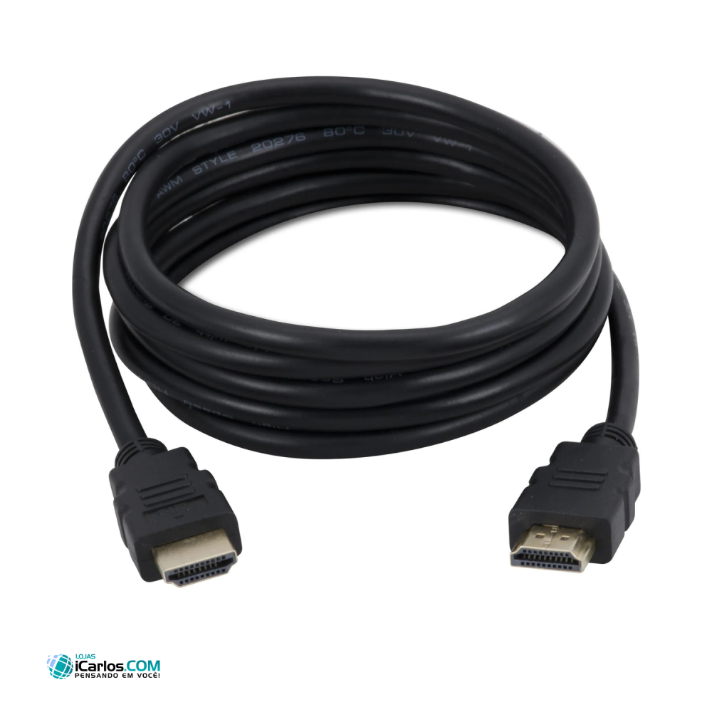 Ótimo cabo HDMI Tipo A de 15 metros com revestimento emborrachado sobre a blindagem e conectores resistentes, configuração que evita interferências e proporciona maior vida útil e segurança para as conexões entre seus aparelhos transmissores e receptores de áudio e vídeo em HDMI.