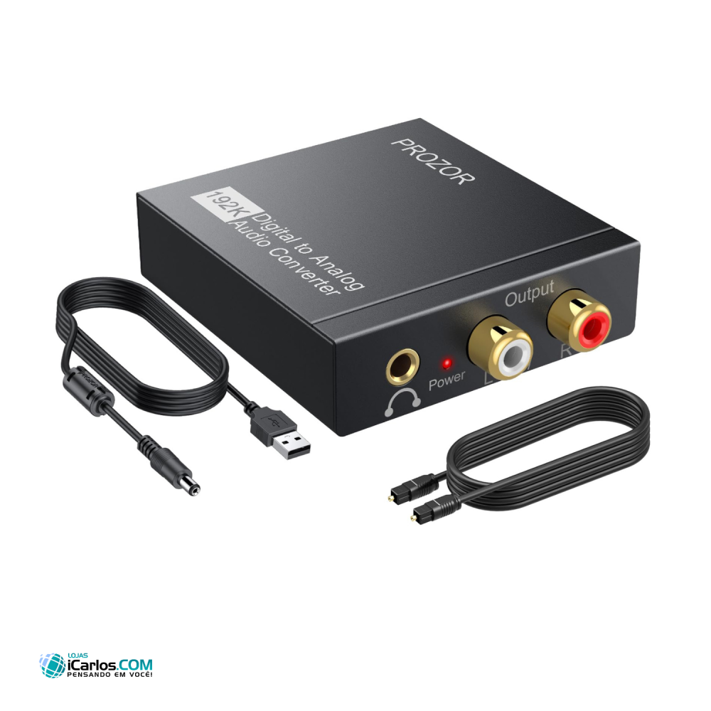Conversor de áudio digital para analógico de 192 KHz: converte sinais de áudio PCM coaxial ou Toslink digital para analógico L/R RCA e áudio de conector de 3,5 mm simultaneamente (não é capaz de ser invertido)