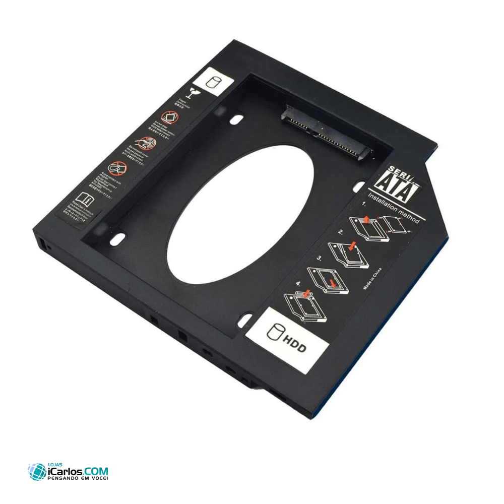 Transforme a porta de CD/DVD do seu notebook em uma porta para HDD de até 500GB, é integrado ao notebook, sem necessidade de cabos, fontes ou drivers. Compatível com notebooks que possuam baia DVD-ROM de 12,7mm.