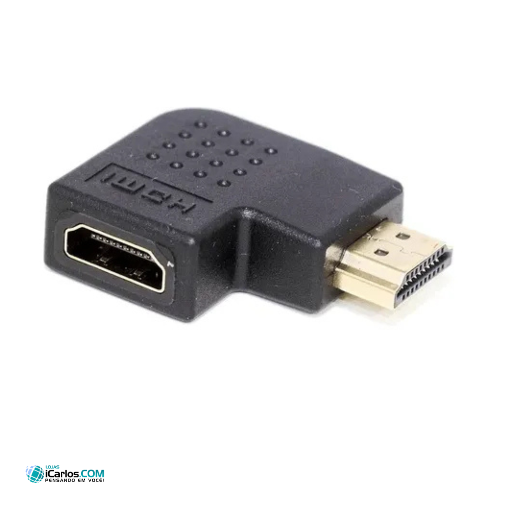 Adaptador HDMI 90º para Facilita a instalação de equipamentos que estão próximos da parede Especificações Técnicas: - Adaptador compacto com excelente qualidade. - Excelente opção para quem precisa instalar a TV em um suporte fixo ou molduras com pouco espaço traseiro. - Além disso, evita que o cabo HDMI danifique por ficar dobrado.