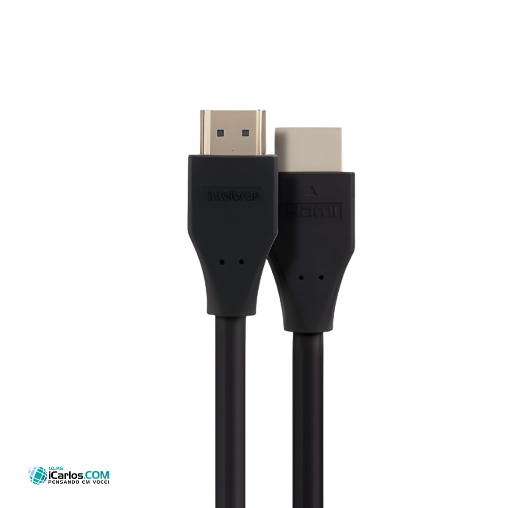 Cabo HDMI versão 2.0, que proporciona mais qualidade de imagem e é compatível com televisores que transmitem imagens em 4K a 60 Hz. O cabo HDMI possui 3m de comprimento, facilitando a conexão dos dispositivos.