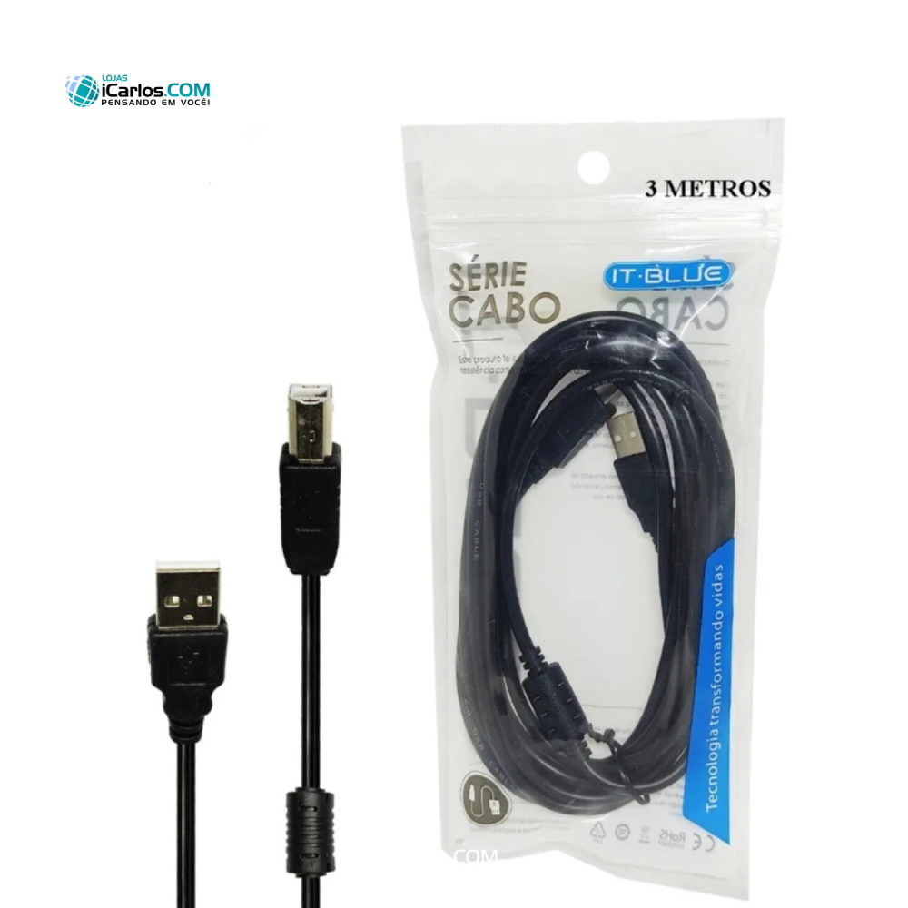 #CABO USB AM/BM 2.0 3,00M PRETO IT-BLUE LE-902 3M