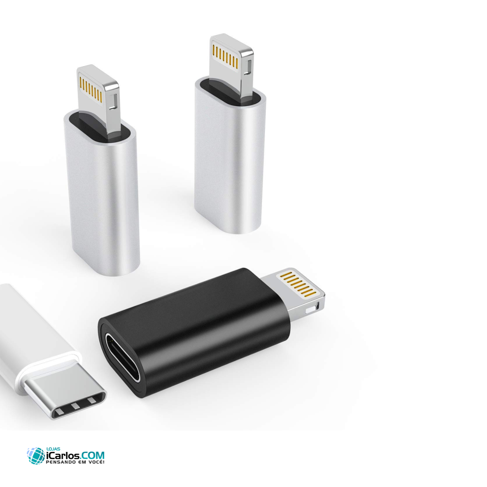 Este é um adaptador de carregamento USB-C fêmea para Lightning macho, suporta o carregamento de dispositivos Lightning usando cabos USB C