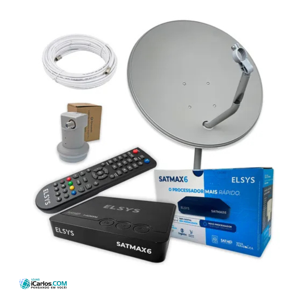 KIT RECEPTOR E ANTENA 60CM ELSYS SATMAX BANDA KU ETKI99 998901601320 PRETO BIVOLT