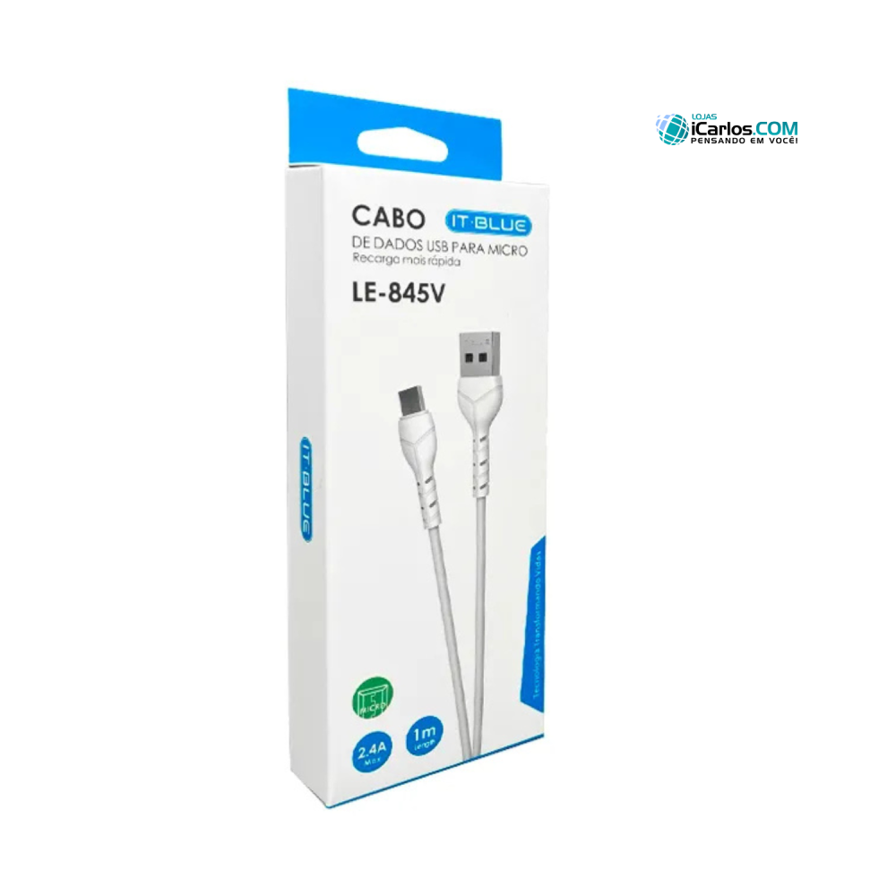 Cabo USB para transmissão de dados indicado para celulares que possuem conector Micro-USB (V8) das mais diversas marcas.