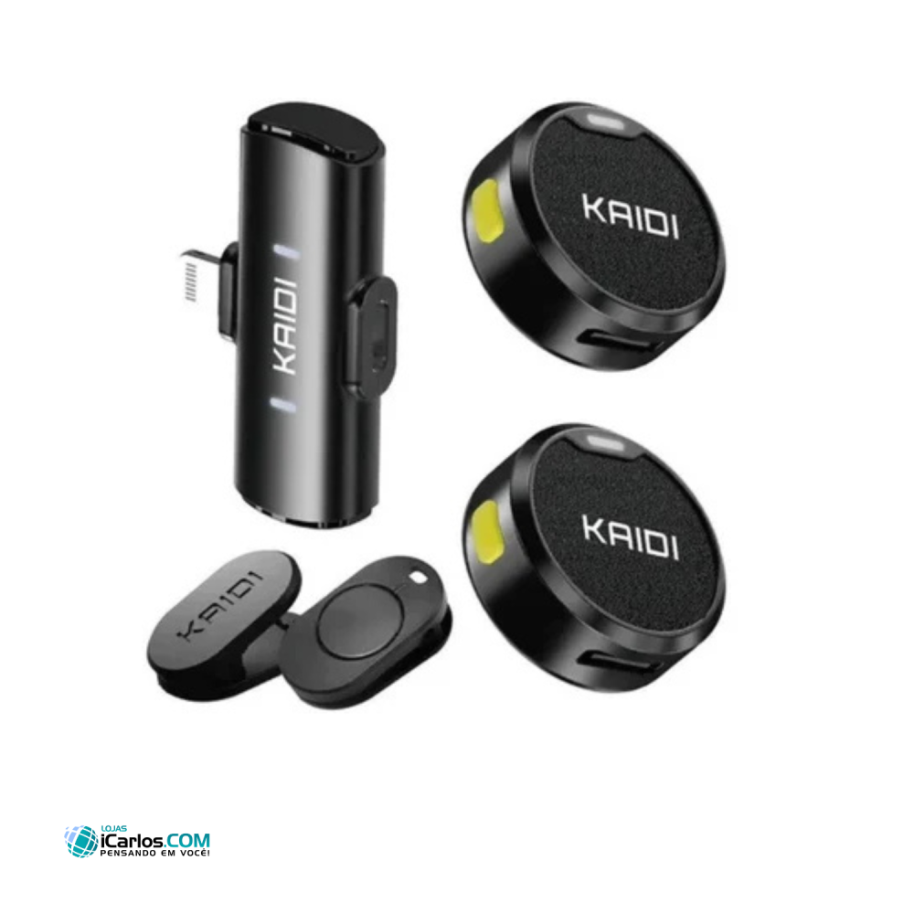 Este sistema microfone duplo kaidi kmf4-a wireless lightning para smartphones possui frequência wireless de alta capacidade, transmissores com clipes magnéticos e autonomia de até 4 horas, assim como oferece uma alta qualidade de som, sendo portátil e muito fácil de usar. Projetado para captação simultânea de 2 pessoas, o conjunto traz tecnologia plug and play que não necessita de aplicativos e drivers, basta conectar no celular e usar.