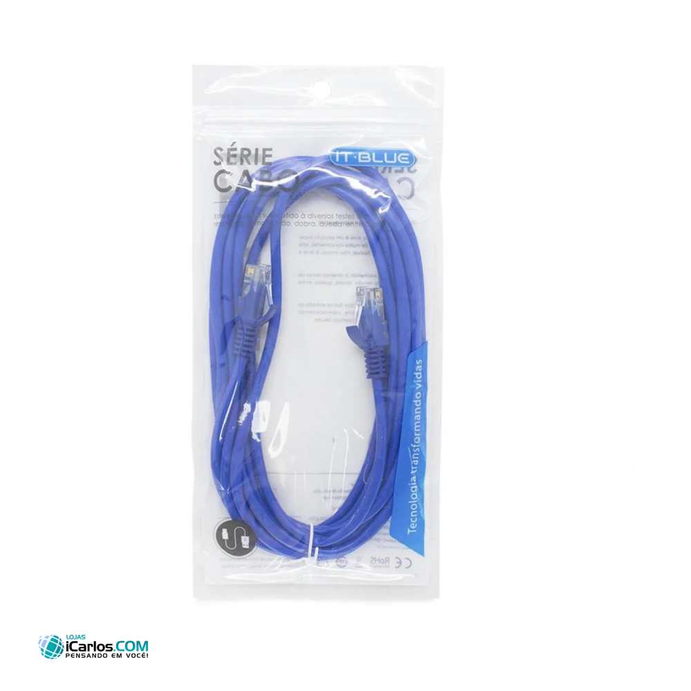 CABO RJ45 IT-BLUE LE-302 | LE-303 | LE-304 O cabo RJ45 da It-Blue conhecido também como cabo de rede por conectar equipamentos em uma rede, foi submetido à diversos testes de resistência como tensão, dobra e queda, além de ser revestido com PVC, retardando a propagação de chamas, por isso a It-Blue garante sua qualidade. Modelo feito para ter longa duração, é flexível, não enrola e é fácil de guardar. Seu conector é de alta qualidade e fixa na entrada do dispositivo firmemente, permanecendo conectado durante todo o período de uso.
