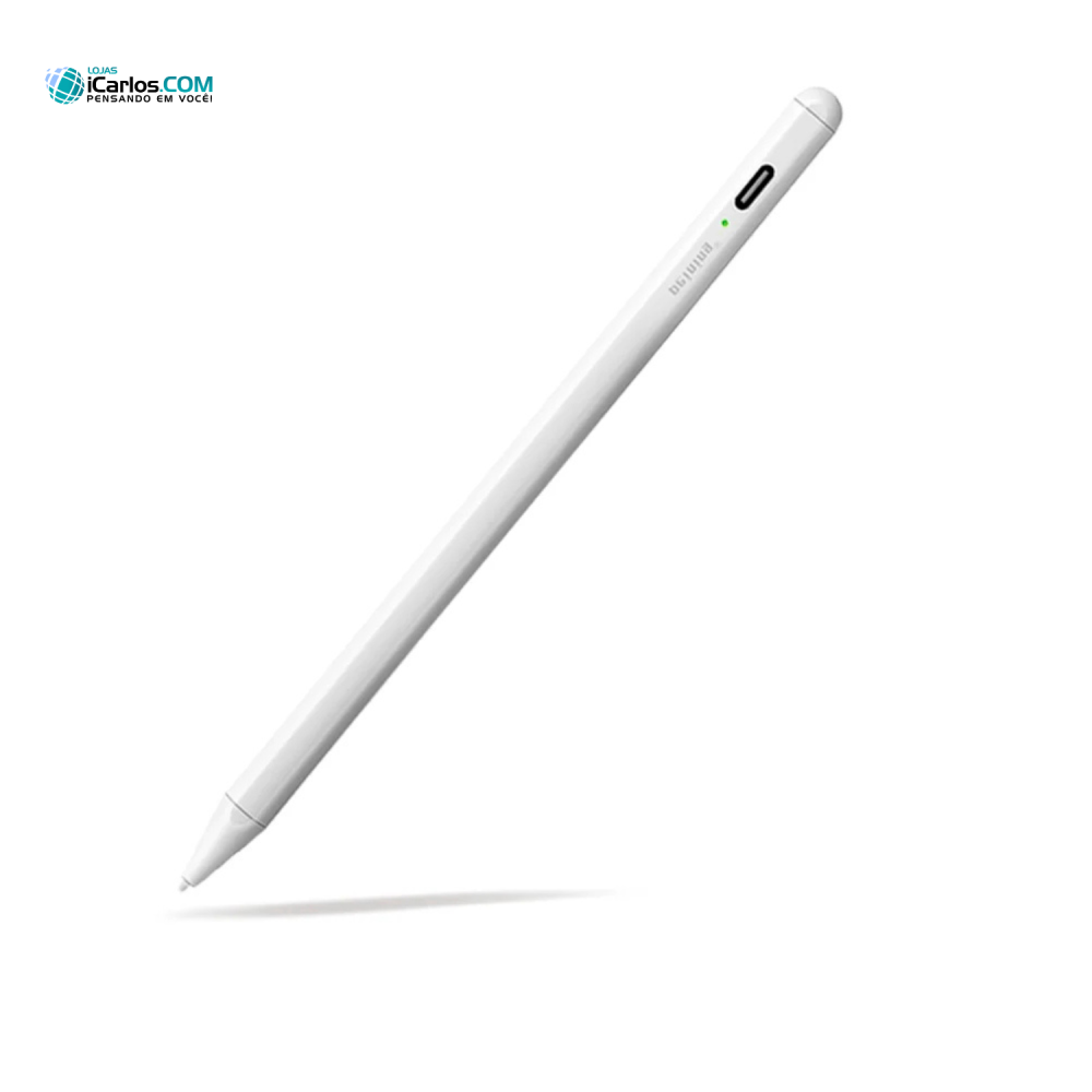 Esta caneta sem fio funciona através do contato direto com a tela, sem necessidade de conexão Bluetooth. Possui uma bateria de longa duração. O indicador LED mostra a quantidade de bateria restante.